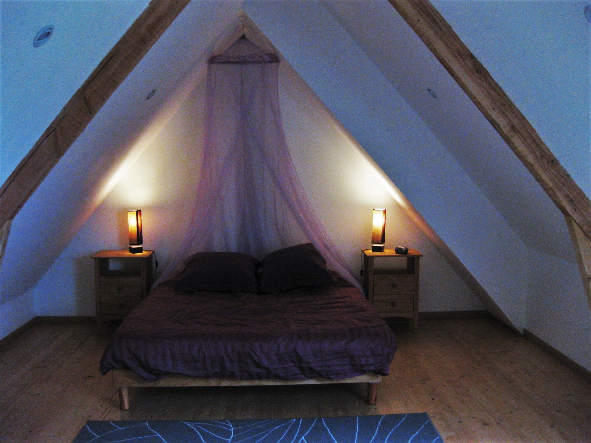 - A l’étage, vous poursuivrez avec une chambre spacieuse et lumineuse, vue sur la campagne environnante.
