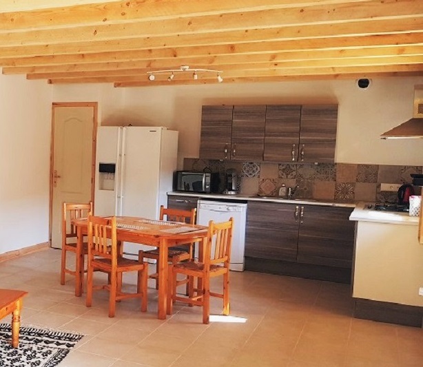 - Une grande cuisine ouverte entièrement équipée : vous vous y sentirez comme à la maison. En effet, four à chaleur tournante avec moules à tartes, mixer plongeant, cocotte-minute, lave-vaisselle, micro-onde, réfrigérateur/congélateur sont intégrés à la cuisine.