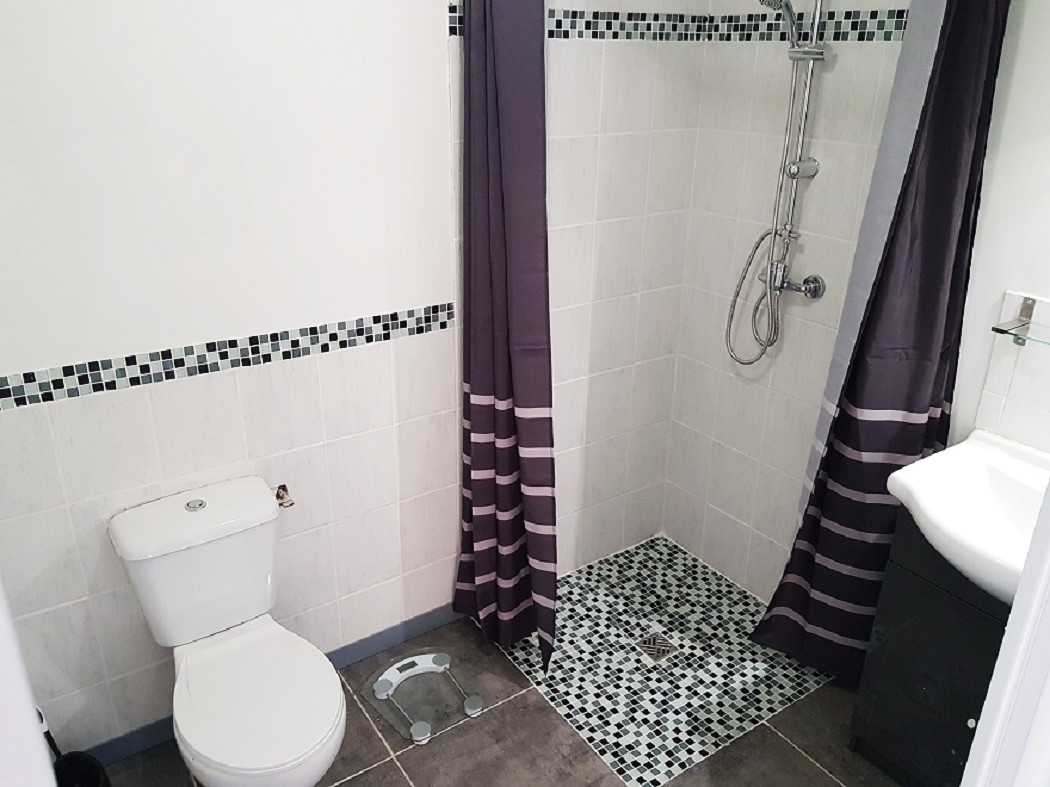 - Une salle de bain avec douche à l’italienne, wc, lavabo